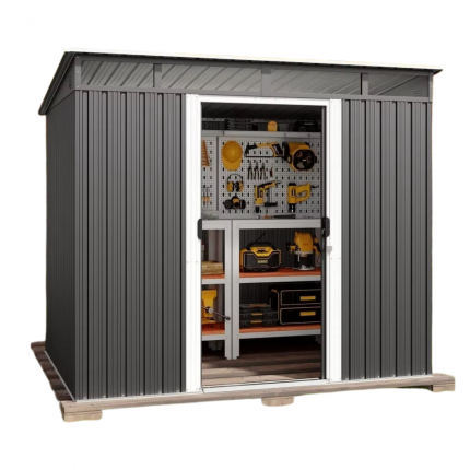 Modern 7.4×5.3Ft Metal Storage Shed with Sliding Lockable Door & Window – Stylish & Secure Outdoor Organization