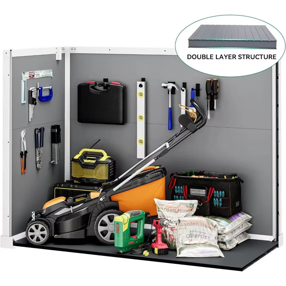- Durable Double-Layer PE Resin: Constructed from hard-wearing, double-layer polypropylene resin panels, this shed provides long-lasting strength, stability, and excellent water, weather, and UV resistance.