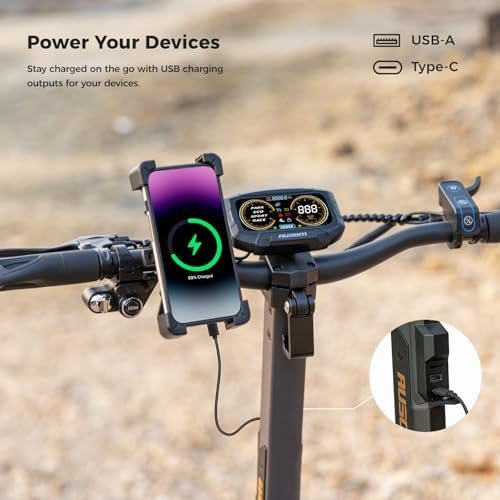 【Comfort and Stability】The scooter features dual rugged swingarm suspension using the aircraft landing gear system, which provides the best shock absorption for a smooth SUV-like ride over bumpy and challenging roads. Its 10″x3″ tubeless knobby tires are thickened and ruggedly processed with high wear and puncture resistance for a more stable and smoother glide over diverse terrains.
