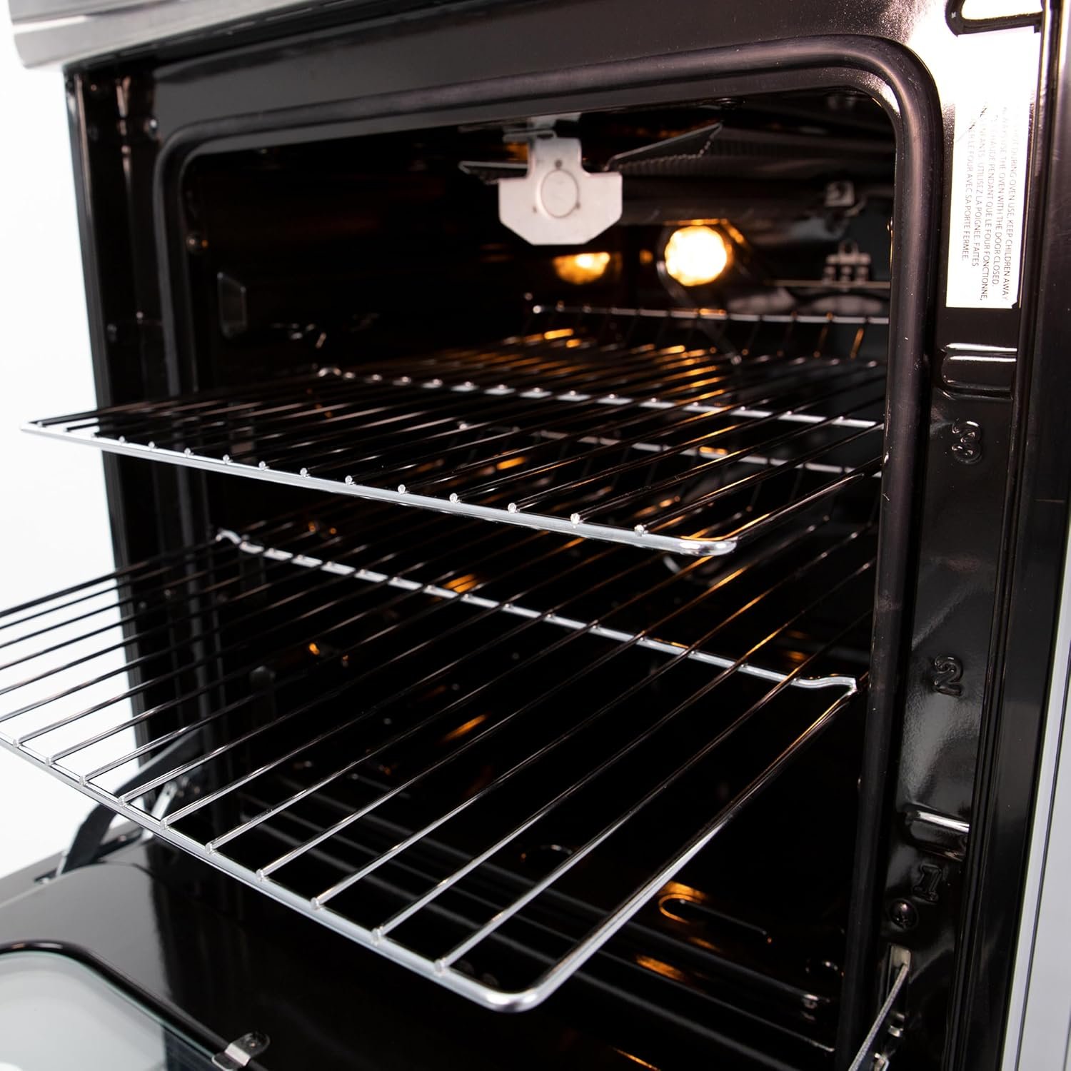 USER-FRIENDLY FEATURES: Seamless framed glass oven door, oven light with ON/OFF switch, and a 60-minute timer for added convenience.