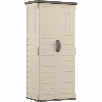 Buy NowWeatherproof Vertical Resin Outdoor Storage Cabinet – Double-Layered, Lockable for Tools & Trash Cans