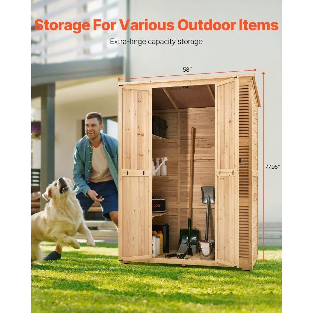 Extra Large 58×78 Inch Waterproof Cedar Wood Outdoor Storage Shed with 4 Shelves & Lock