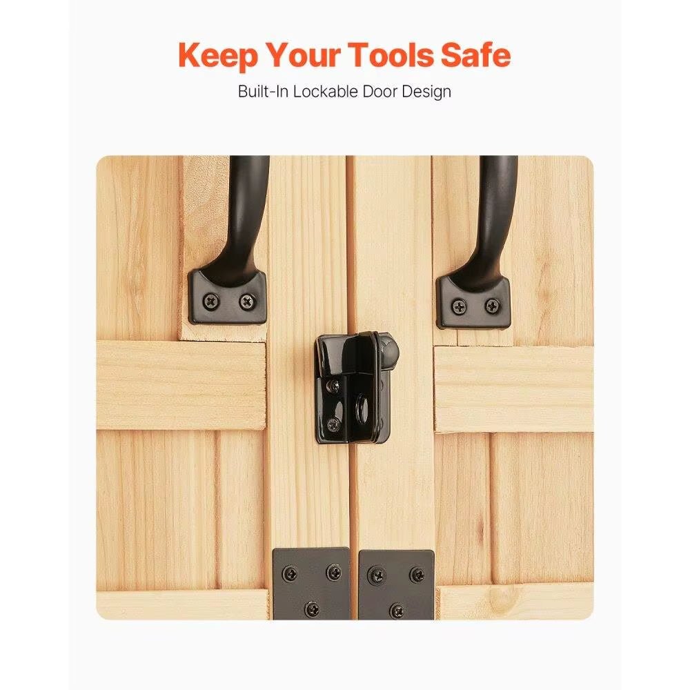 Buy NowTall 63″ Solid Wood Outdoor Storage Cabinet with Adjustable Shelves & Locking Double Doors – Waterproof Roof