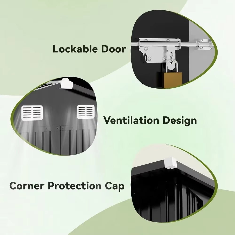 - Weather-Resistant Steel Construction: Built with sturdy steel, this garden shed is designed to withstand the elements, ensuring long-lasting durability and protection for your stored items.