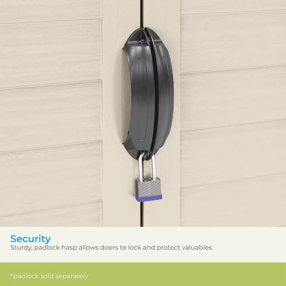 - Secure Locking Double Doors: Equipped with a robust padlock hasp, the double doors ensure your belongings are safe and secure while providing easy access when you need them.