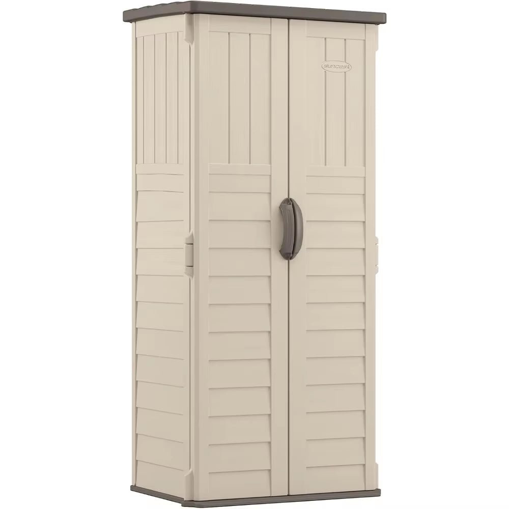 - Sleek & Space-Saving Design: The neutral vanilla finish and compact vertical structure seamlessly blend with any outdoor décor while optimizing your storage area.